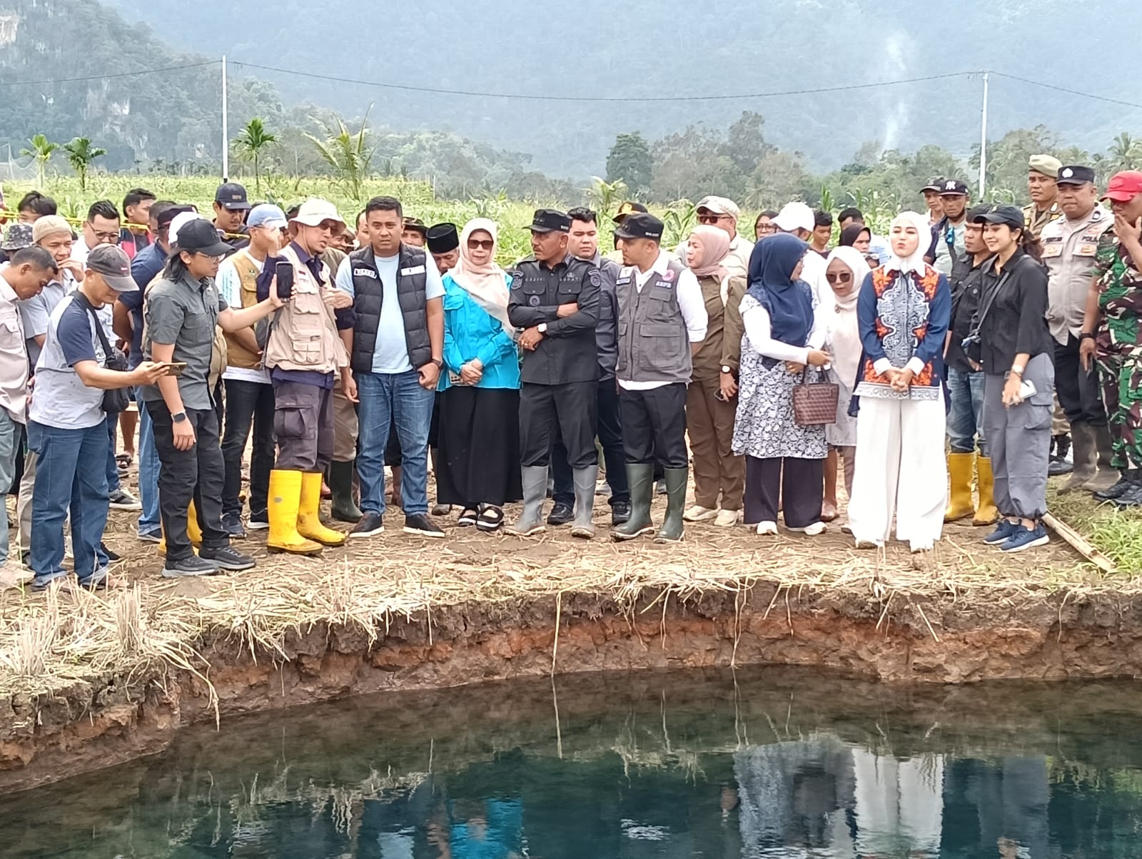 Kedatangan Wagub Sumbar ke lokasi sinkhole didampingi Bupati Safni, Wabup Ahlul Badrito Resha, Kepala OPD, TNI-Polri, Jajaran BPBD, Jajaran Dinas ESDM, serta Badan Geologi dan Anggota DPRD.